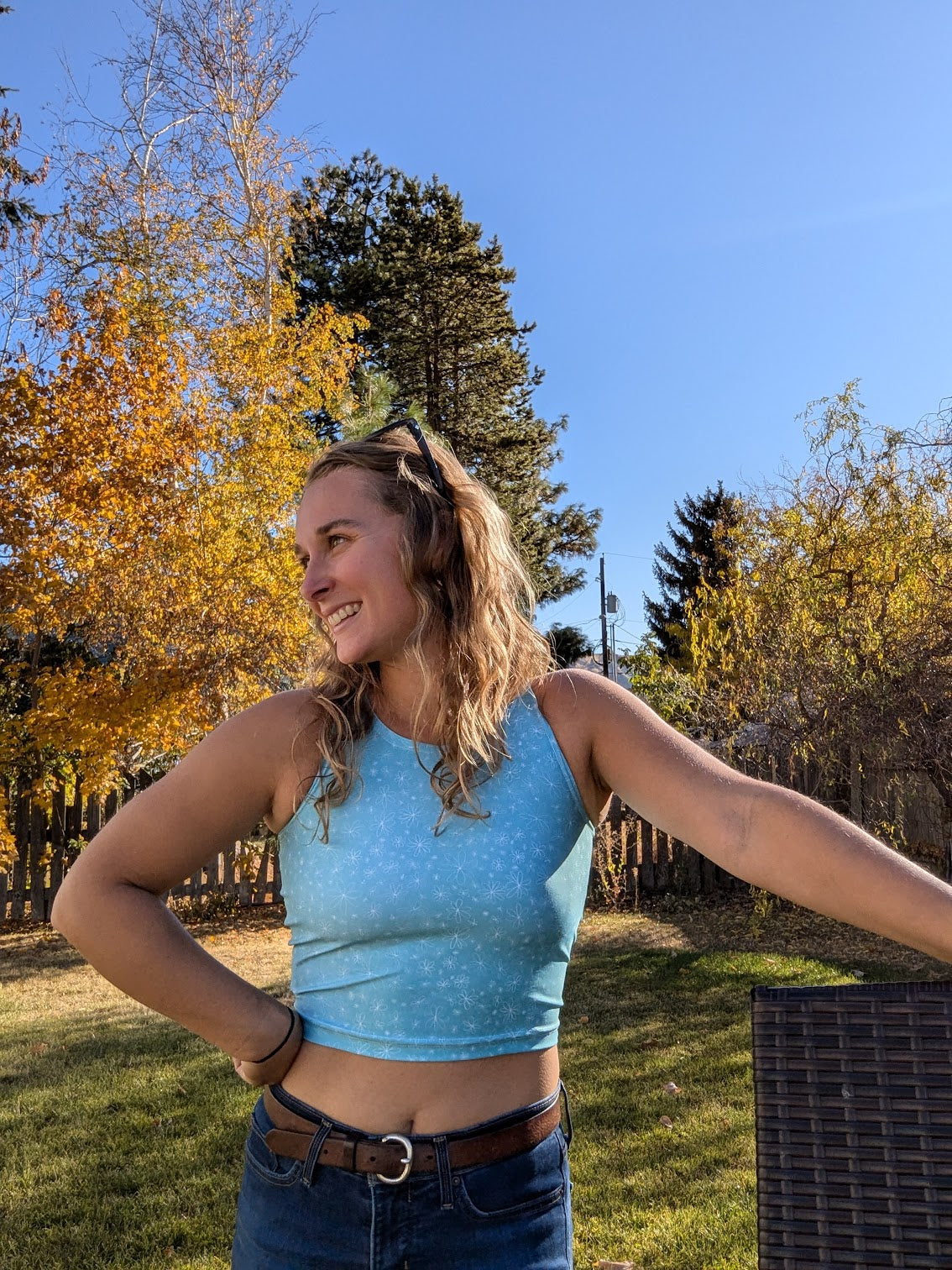 Ready for everyday wear, our athletic crop tops are the perfect layer for sport and comfort. As always, the lasting print is original to Contour - you can't get it anywhere else! We have worn this crop top in so many ways: as a swimsuit, base layer, bra, with overalls, and countless other styles.