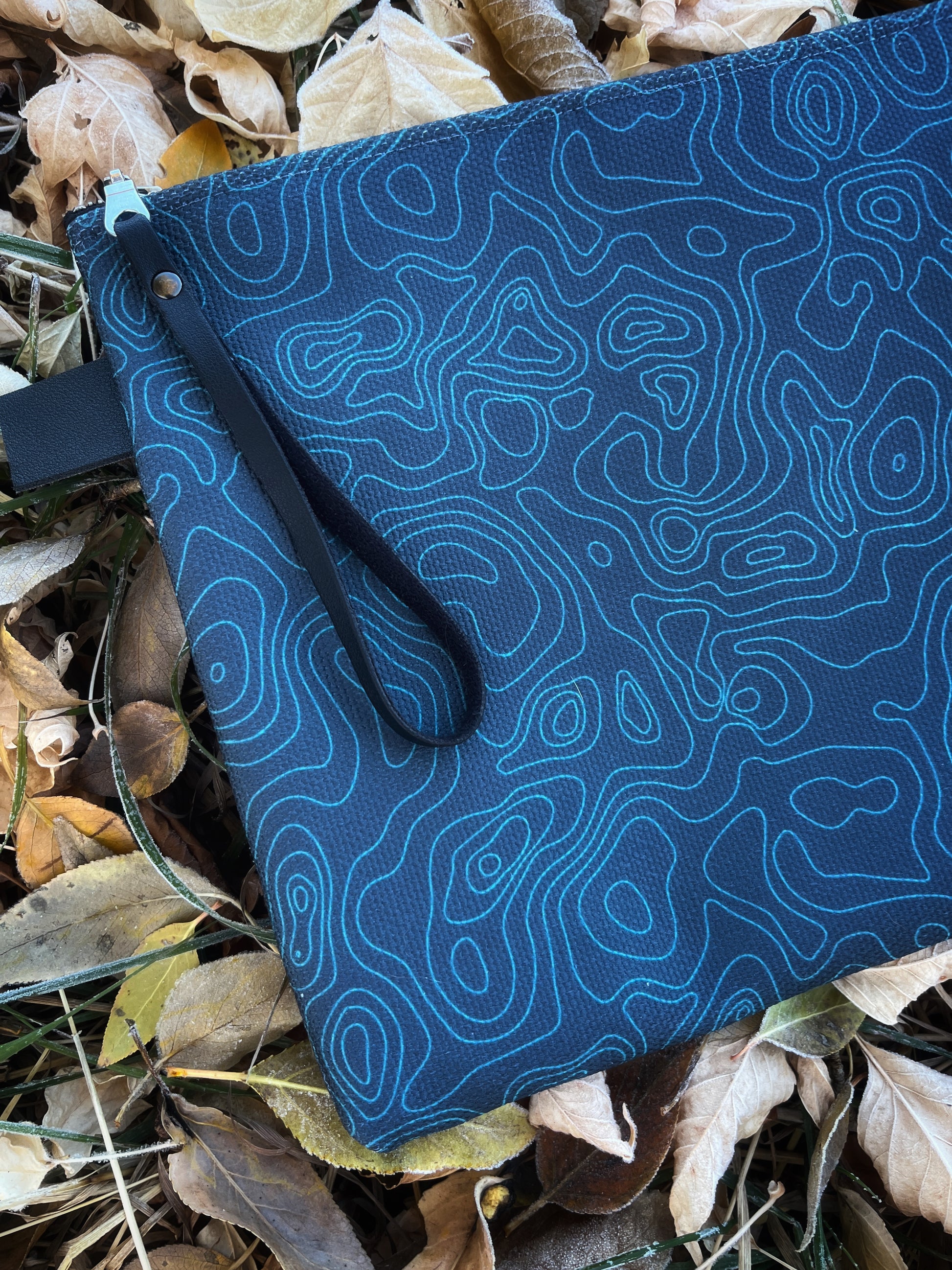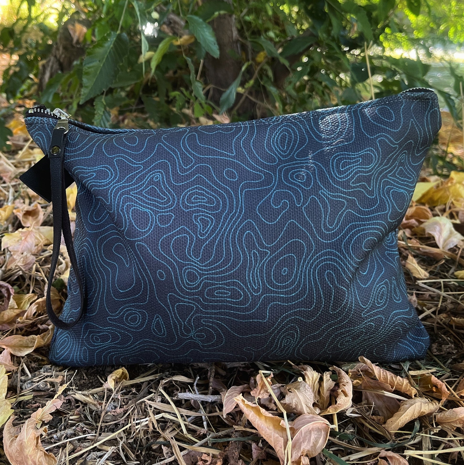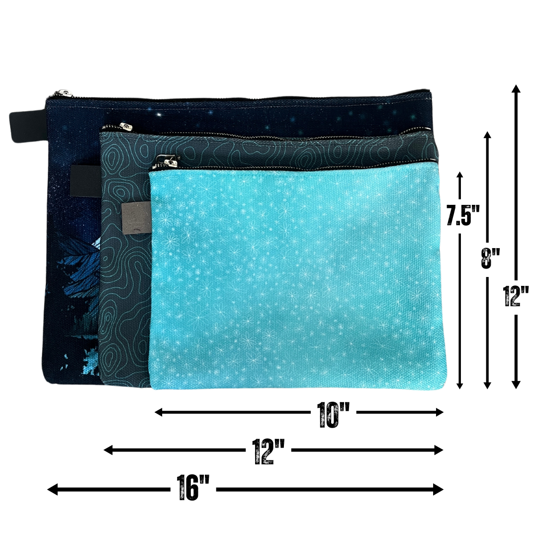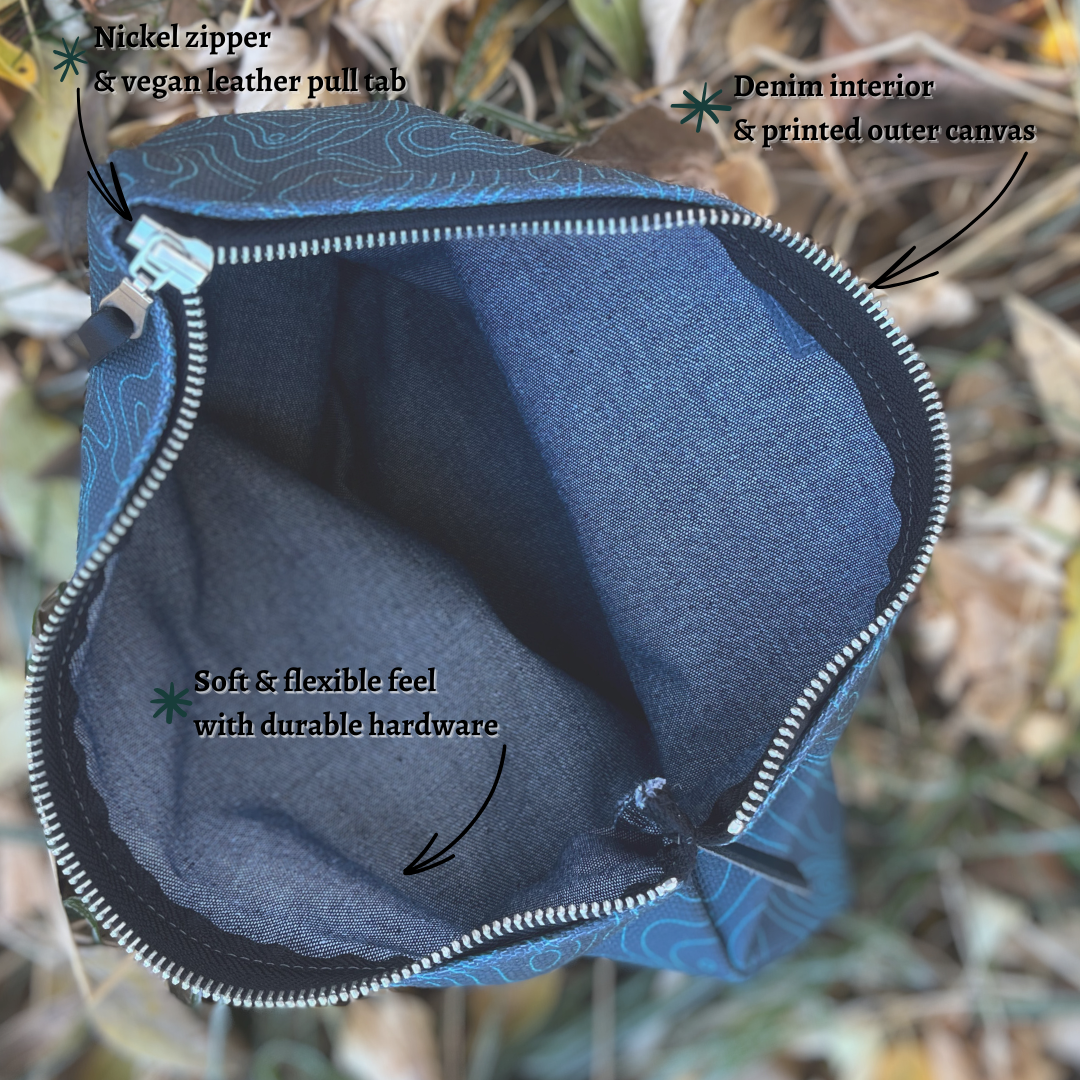 Thick and lined with denim, canvas printed with Contour's original art, and crafted with quality hardware — this zipper pouch is sturdy and ready for adventure. From a tech pouch to diaper bag, this carry-all can be used for anything that needs to be organized.